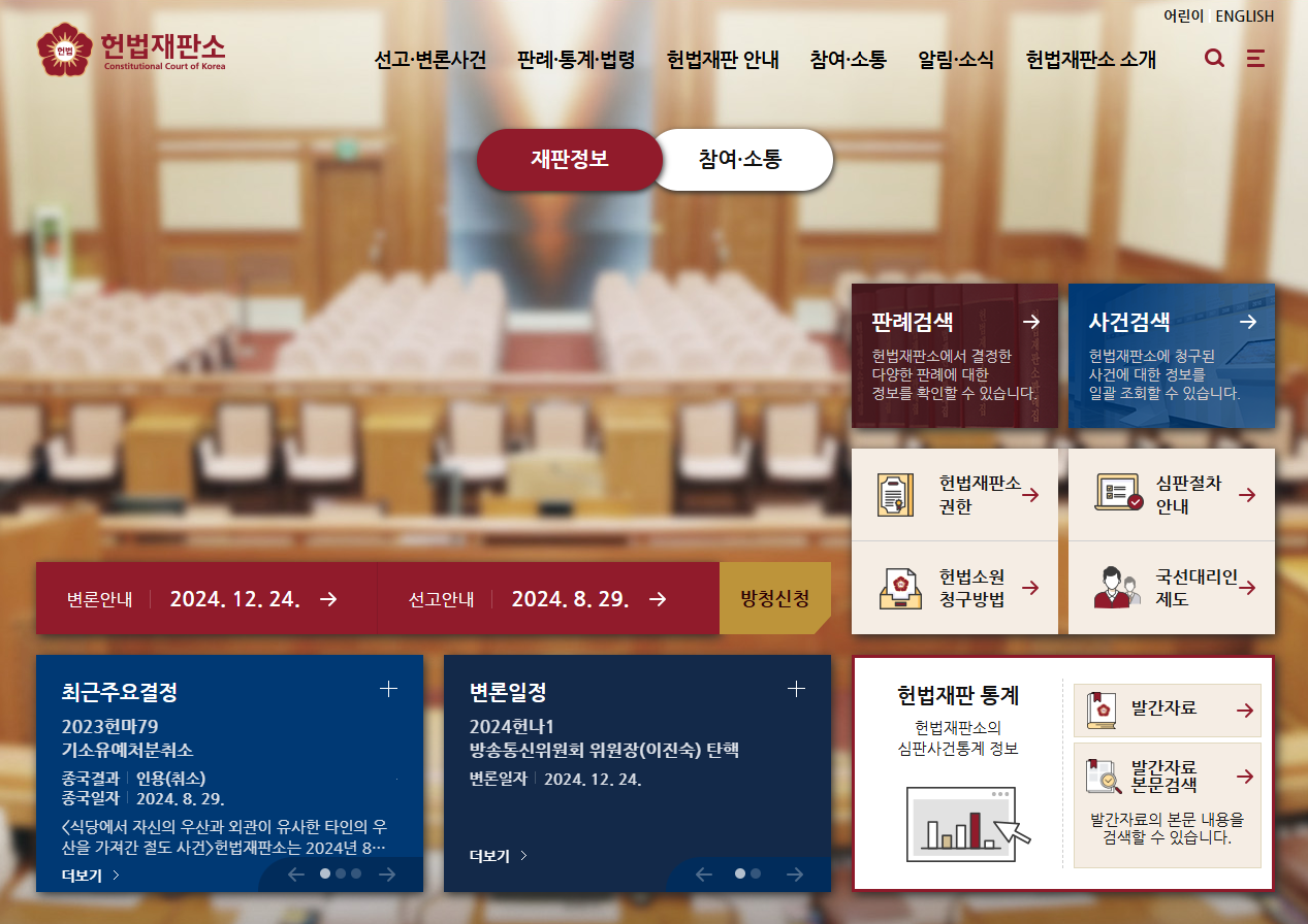 | ✅ 현재 헌법재판소 자유게시판은 탄핵관련 찬성 및 반대 의견으로 게시물이 업로드가 되고있습니다. 본인이 원하는 목소리를 남겨보시길바랍니다. |