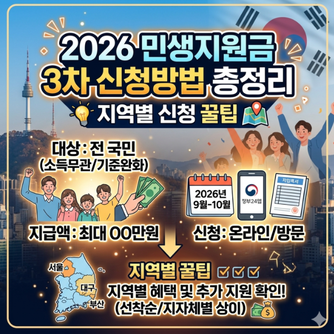 2026 민생지원금 3차는 생활 안정과 경제 부담 완화를 위해 지급됩니다. 하지만 전국 공통이 아닌 지역별 정책이라는 점이 가장 중요합니다.