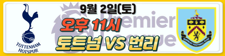 다가오는 토요일 밤 11시에 토트넘과 번리의 경기가 열립니다. 토트넘은 현재 2승 1무로 무패행진중입니다. 번리는 2라운드 루턴 타운과의 경기가 연기되어서 현재 2경기를 진행했지만 2패입니다. 개막전에 맨시티에게 3:0으로 패하였고, 앞전 경기는 아스톤빌라에게 3:1로 패했습니다. 최근 카라바오컵경기 2라운드에서 풀럼을 상대로 승부차기 끝에 패배를 당했습니다.