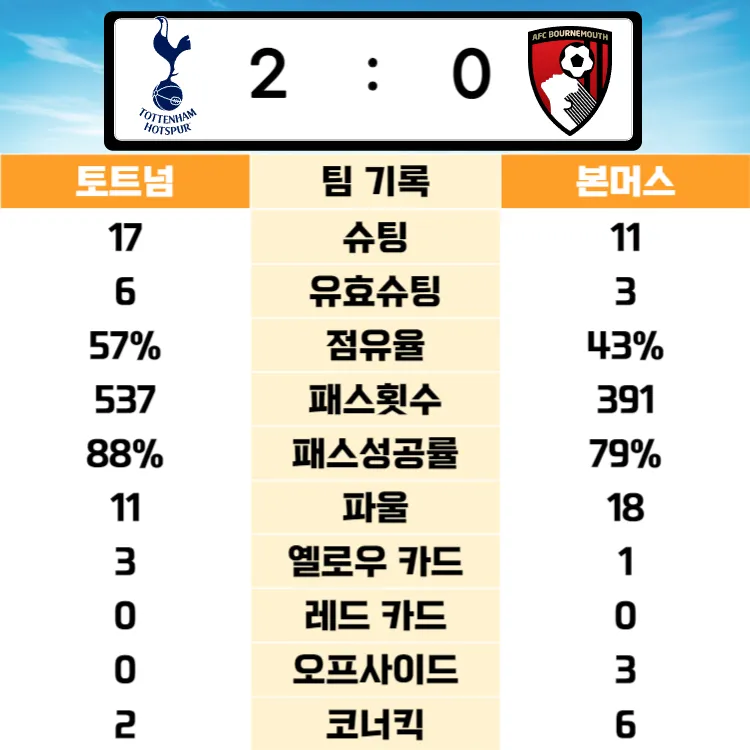 ✅ 토트넘 VS 본머스 경기기록