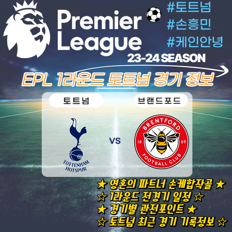 23/24 프리미어리그 손흥민 토트넘 1라운드 경기 정보 및 해리케인 이적설